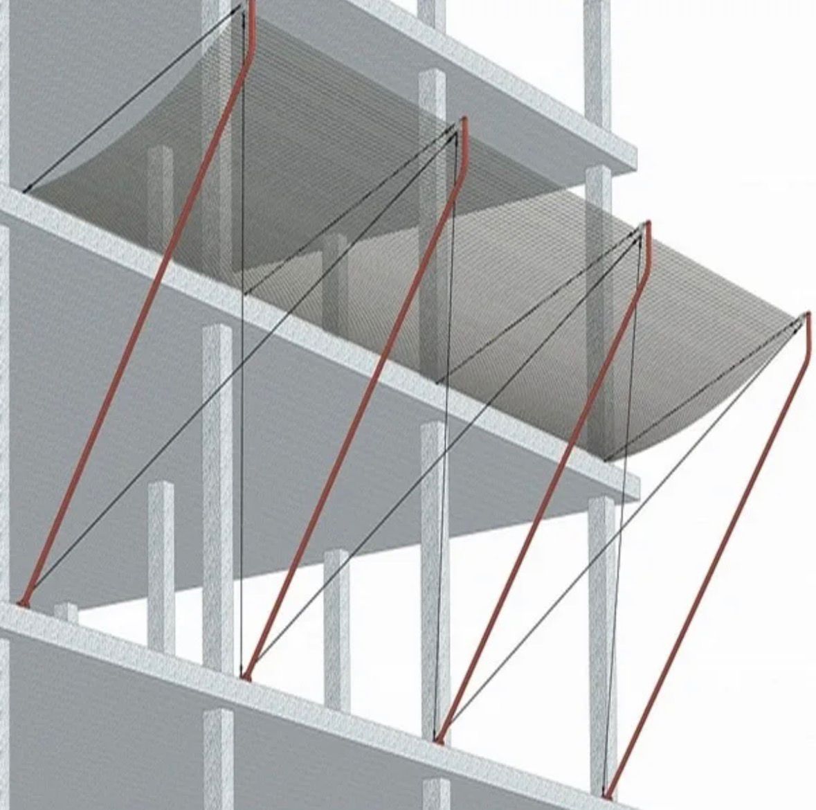При этом необходимо соблюдать СНиП 1203-99 «Безопасность труда в строительстве» СНиП III-4-80* «Техника безопасности в строительстве» и СНиП 3.03.01-87 «Несущие ограждающие конструкции», а также распоряжением московского правительства №7 от 18.01.2007 г: "О применении защитно-улавливающих сеток на строительных объектах города Москвы". А также очередность сборки и установки всей конструкции, следить за правильным вязанием узлов, целостностью канатов и исправностью карабинов для крепления защитно-улавливающей сетки.